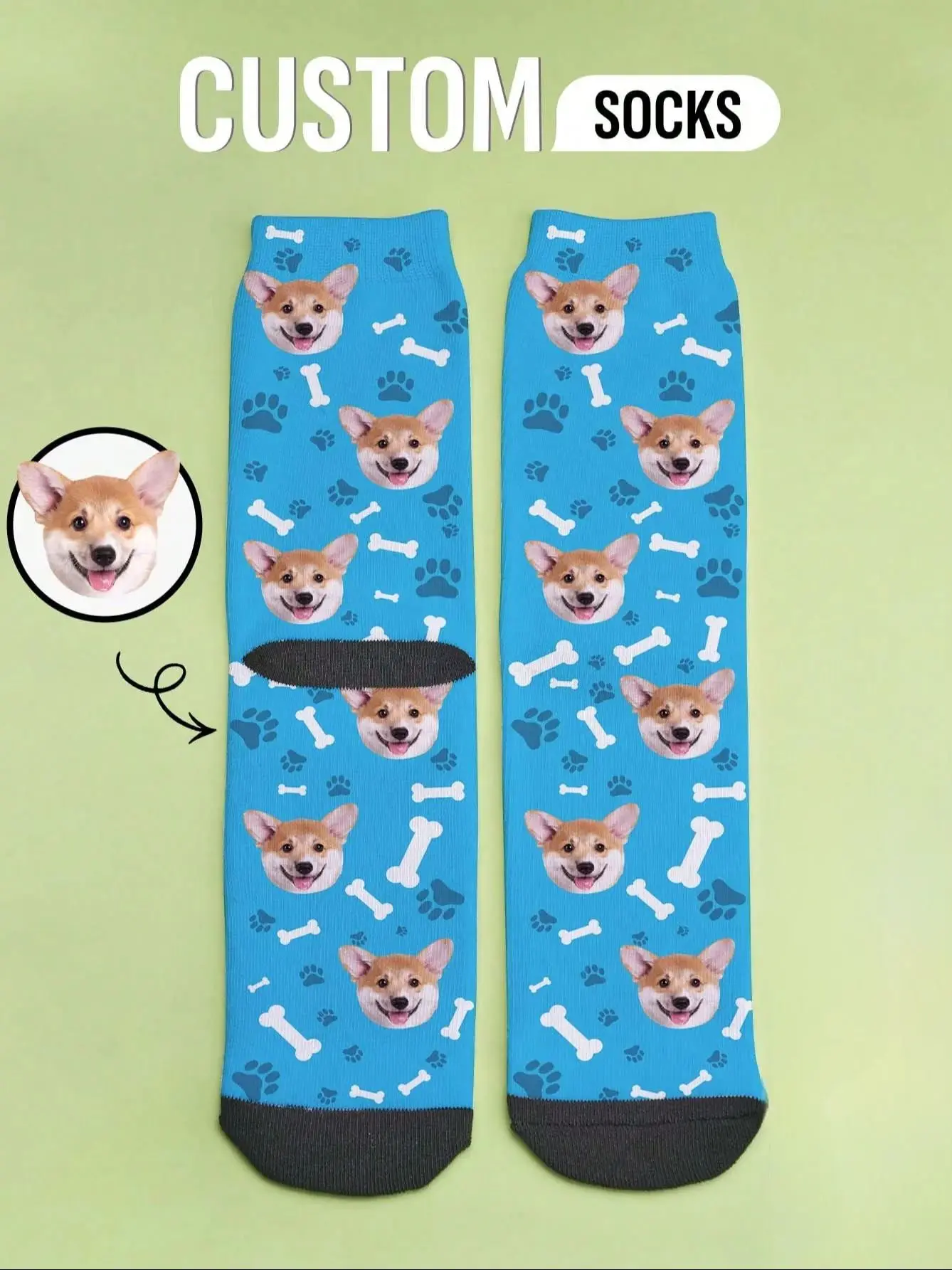 Sube cualquier foto—mascotas, familia, amigos o parejas—y conviértela en calcetines divertidos y únicos. ¡Un regalo personalizado creativo e inolvidable!